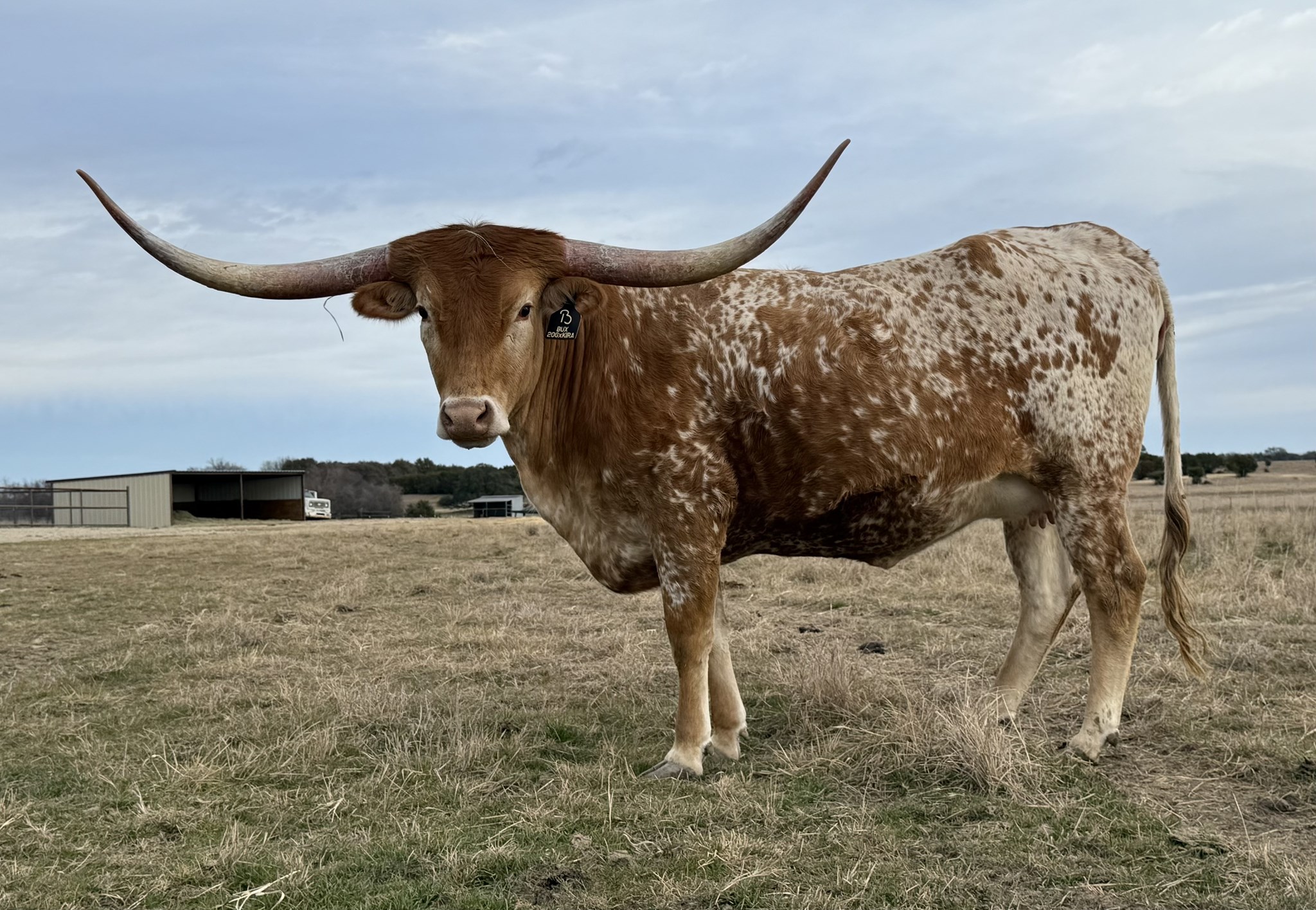 This young heifer combines the horn, color, and maternal depth of BL Kira 952 with the proven performance and refinement of Hubbells 20 Gauge. Her pedigree is stacked with legendary sires including Concealed Weapon, JP Rio Grande, Expedite and Cowboy Tuff Chex β a lineup that ensures both predictability and profitability. 20 Gauge daughters are prized for their feminine structure, horn growth, and consistent color,. Sheβs bred to BUX Big Bux bringing Rebel HR, Over Kill, and Hunts Command Respect bloodlines together β a true powerhouse of size, horn, and proven production. His sire, Rebel HR, has made a name across the industry for throwing exceptional color and horn genetics. This heifer and her expected 2025 calf by BUX Big Bux are a textbook example of modern breeding β elite genetics, performance potential, and investment value. Whether youβre building a foundation herd or adding power to an established program, this pairing brings both immediate appeal and long-term returns.