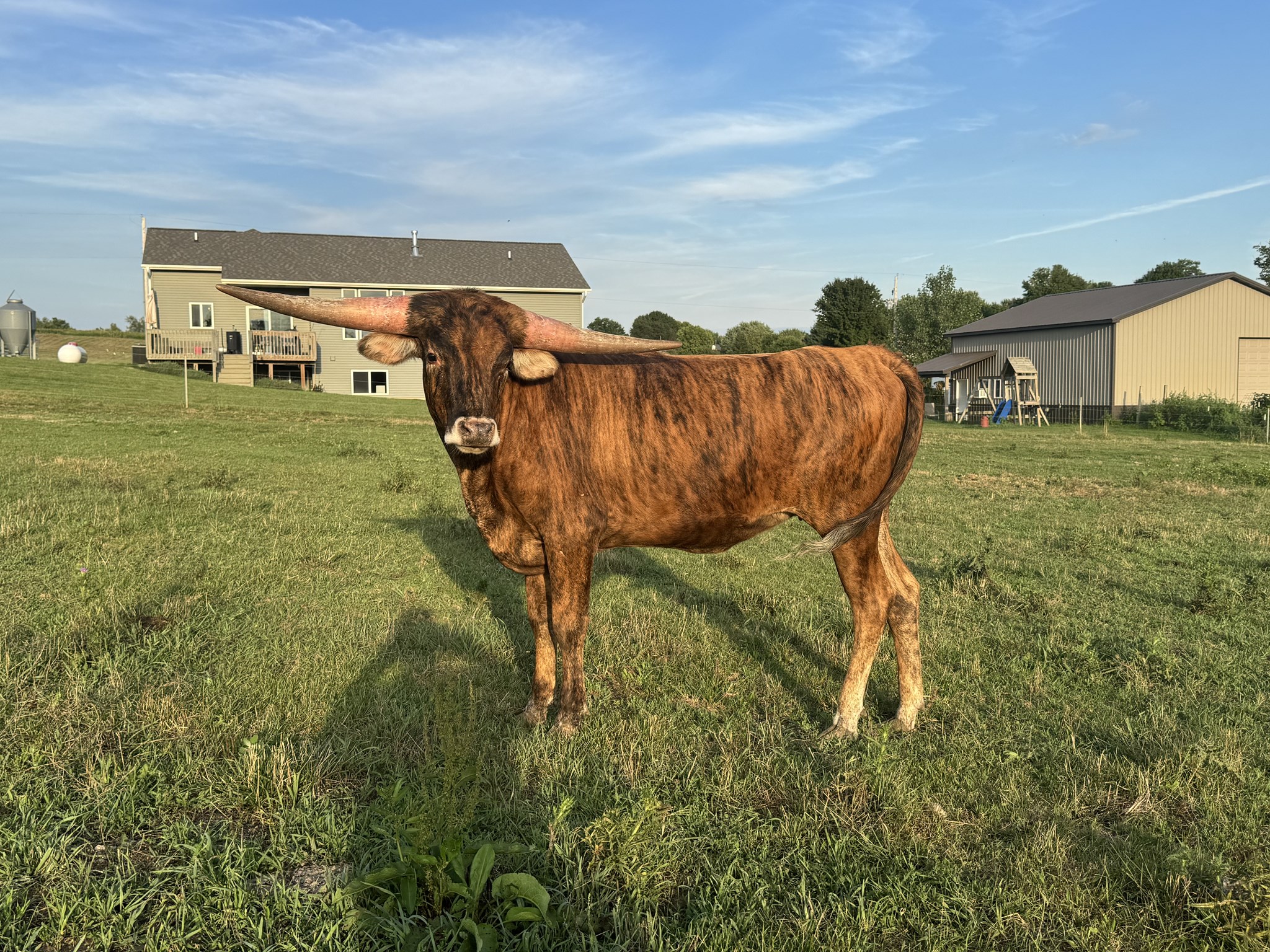 If you are looking to add color to your herd and a female to produce it for years to come, this brindle beauty is it. Her maternal line produces some of the most unique color variants. She was 37.5” TTT at 12 months! We are retaining her 2023 sister and dam. Her Maternal sister HNB Yellow Rose was a Futurity Money earner and 62 " TTT at 27 months. Her sire, Stone Red, is a direct son of the legendary D/O Miss Grande 97” TTT and full brother to $160K 103” TTT Helms Miss Impressive. Stone Red daughters are winning futurities and making impacts on programs across the country. The NFLR dam of the year LBR Miss Ruby Red is a Stone Red daughter