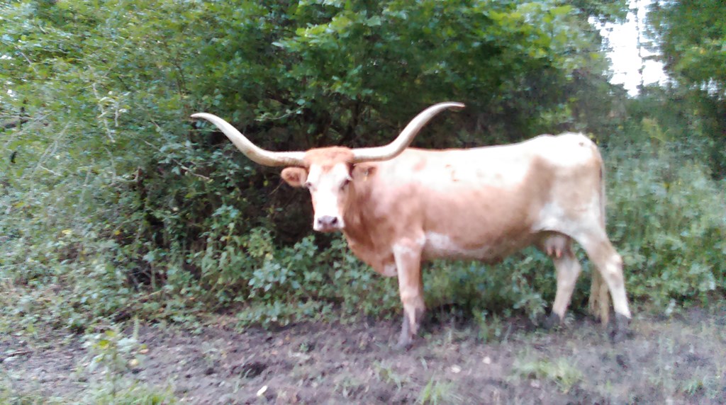 What a neat cow to own. She is the Dam of my Huge almost 80" horned beautiful brindle Maximus cow. I have four generations of her in my herd.