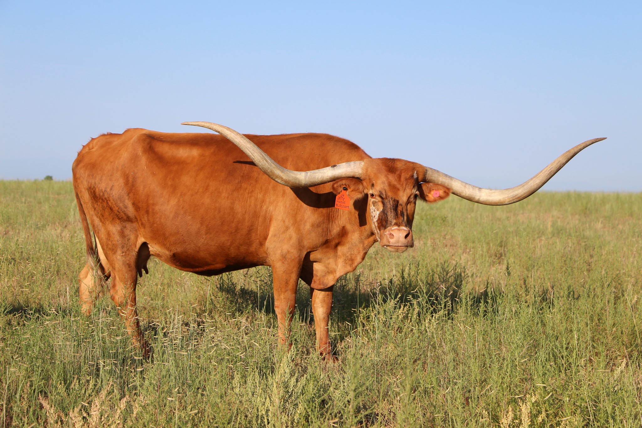 A winning combination with JH One Eyed Blossom and Jet Black Chex. This family is known for it's early horn growth. We put Jet Black Chex on for confirmation and maternal traits.